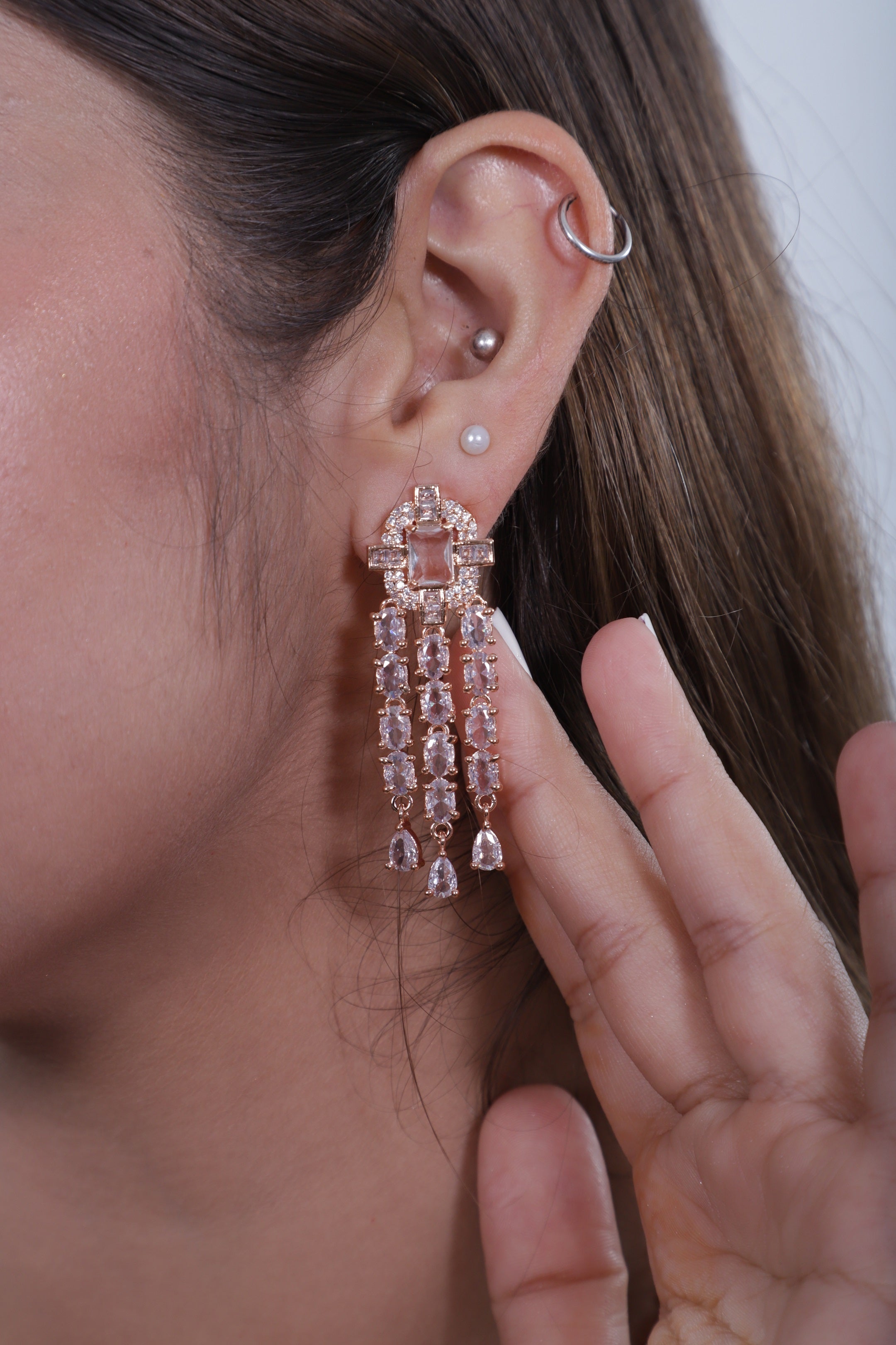 • Luxurious Design: The set features a delicate rose gold finish, perfectly complementing the brilliance of the American diamonds. The intricate design exudes grace and elegance, making it a versatile accessory for both traditional and contemporary outfits.
