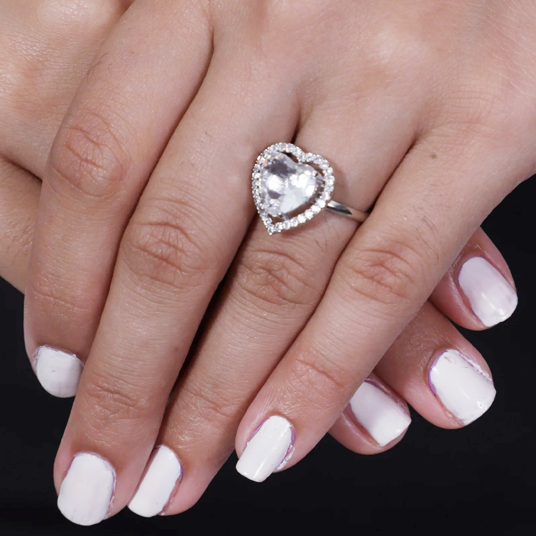 Viora Rhodium-Plated Heart-Shaped American Diamond Stone Ring