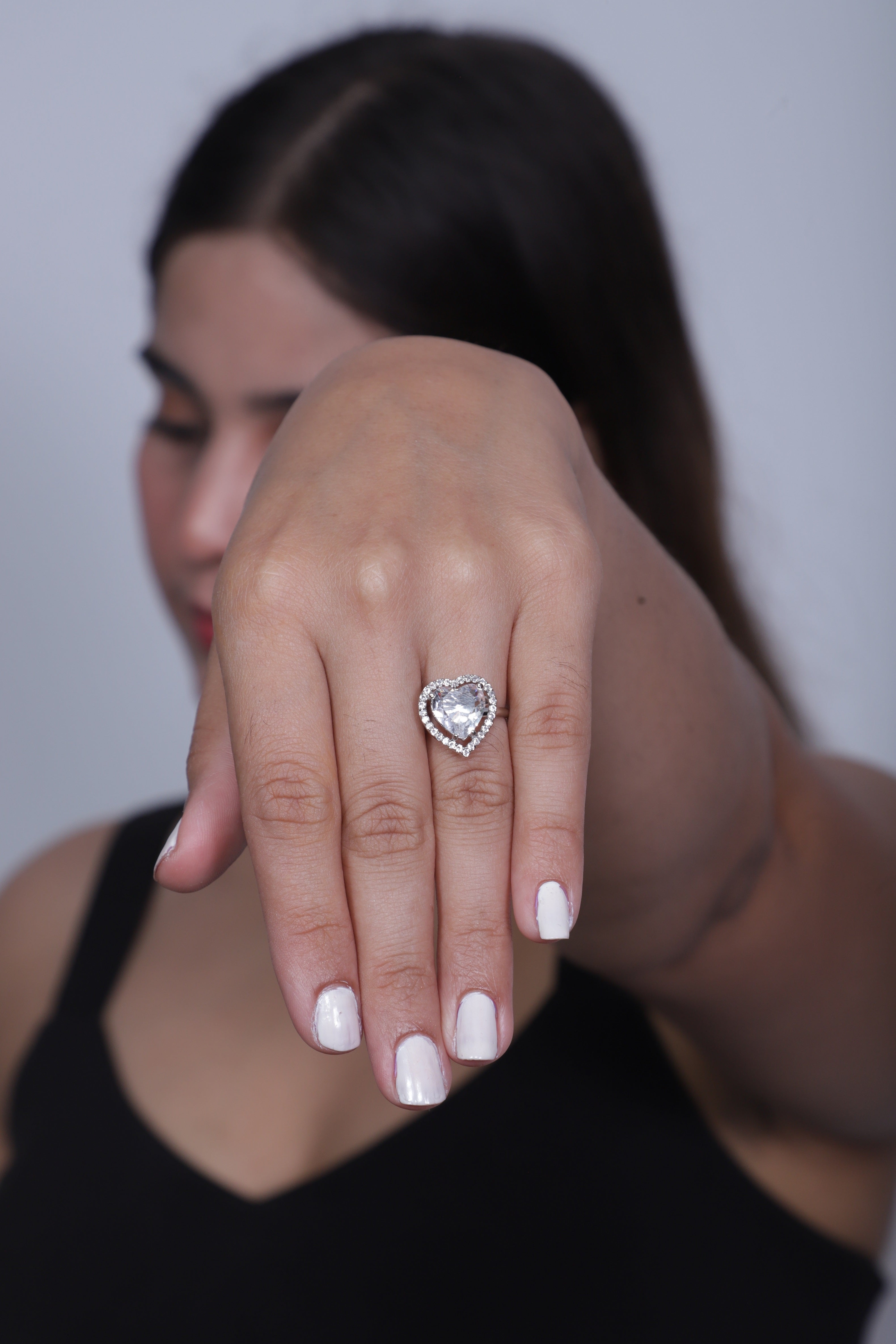 Embrace luxury and style with Viora’s exquisite Rhodium-Plated Heart-Shaped American Diamond Stone Ring—where beauty meets brilliance.